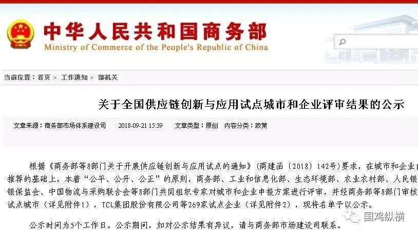 9月21日,商務部網站公布我國55座城市、269家企業為國家級供應鏈創新與應用試點,湖南湘佳牧業股份有限公司被商務部、工業和信息化部、生態環境部、農業農村部、人民銀行、市場監管總局、銀保監會、中國物流與采購聯合會等8部門授予國家級供應鏈創新與應用試點企業。