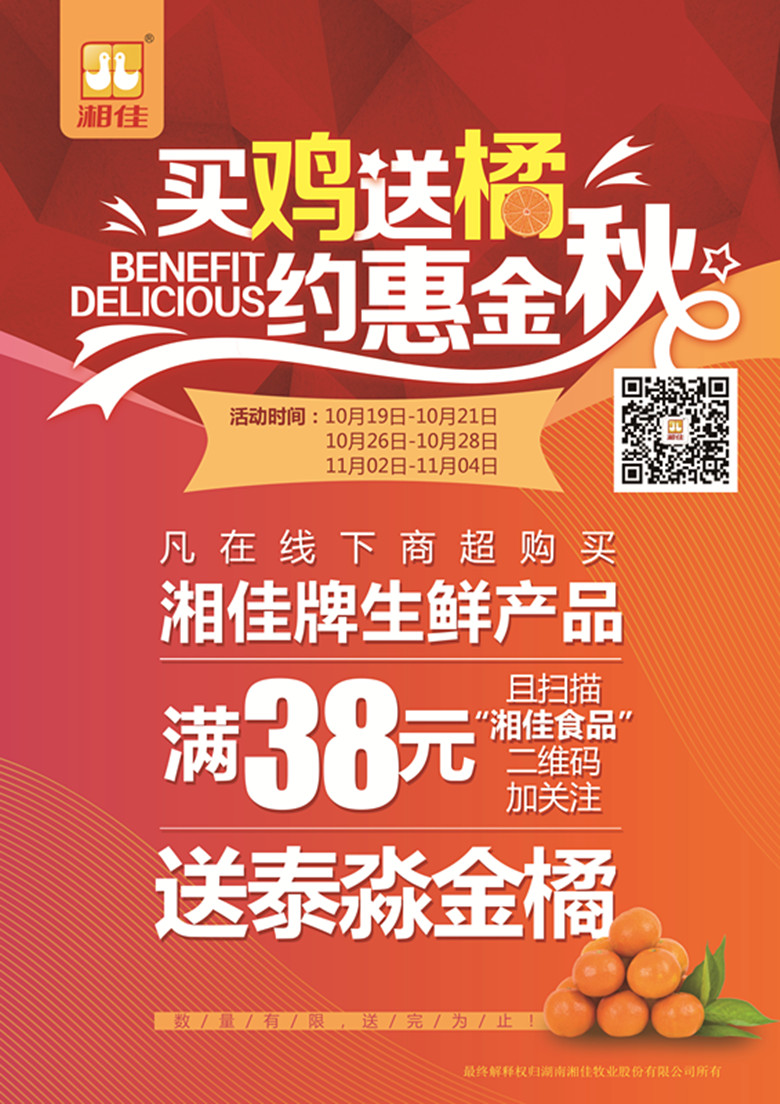 金秋特惠,買雞送橘,湘佳牧業,賣雞送吉!