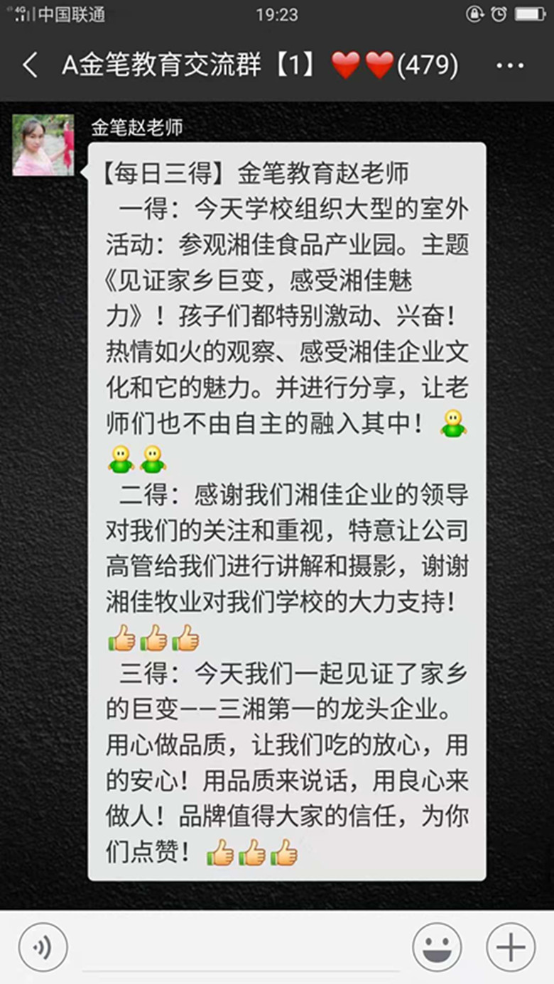 這次參觀企業的活動,加深了學生們對家鄉本土企業湘佳牧業的了解,開闊了學生們的眼界,增長了學生們的見識。