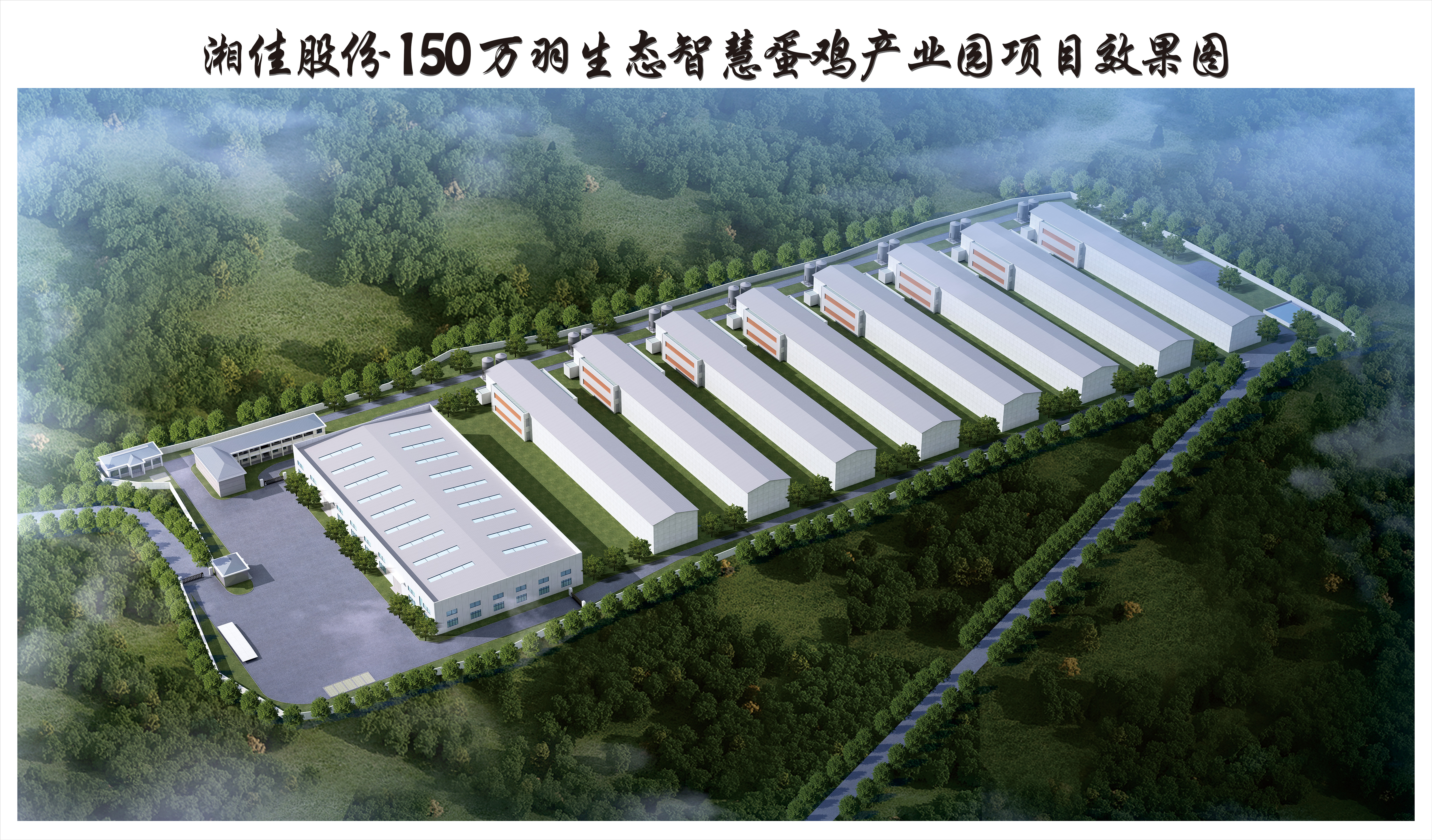 湘佳股份150萬羽生態智慧蛋雞產業園項目,占地總面積120畝,總投資2.5億元,以生態綠色、智能養殖、智慧加工為核心,啟用國際領先的高標準化養殖、智能分選、蛋液分離加工設備設施和自動化管理,打造高品質雞蛋和蛋品初加工產品品牌。