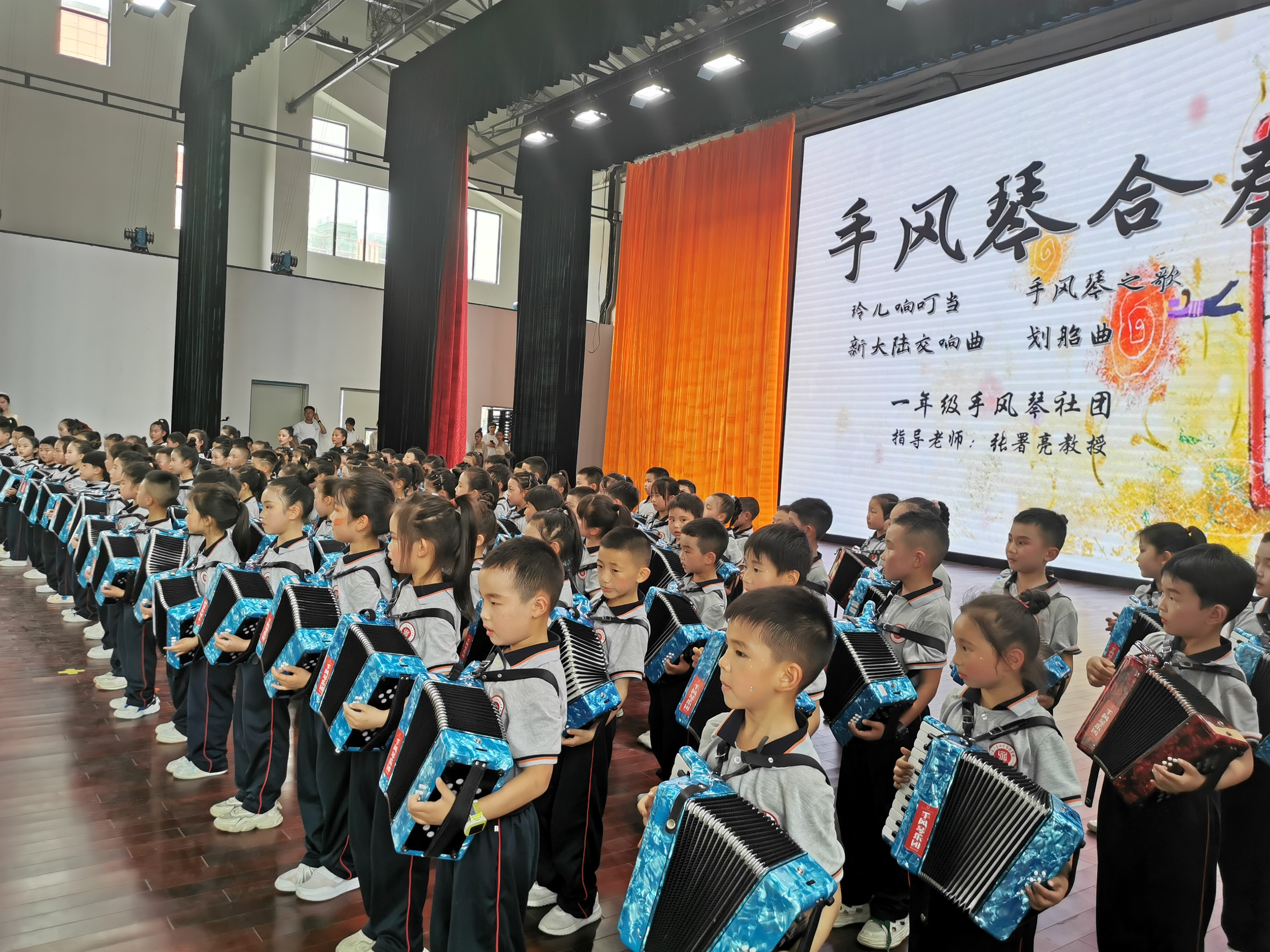 捐贈(zèng)儀式結(jié)束后,湘佳永興學(xué)校128名手風(fēng)琴樂(lè)團(tuán)團(tuán)員現(xiàn)場(chǎng)進(jìn)行了匯報(bào)演出。