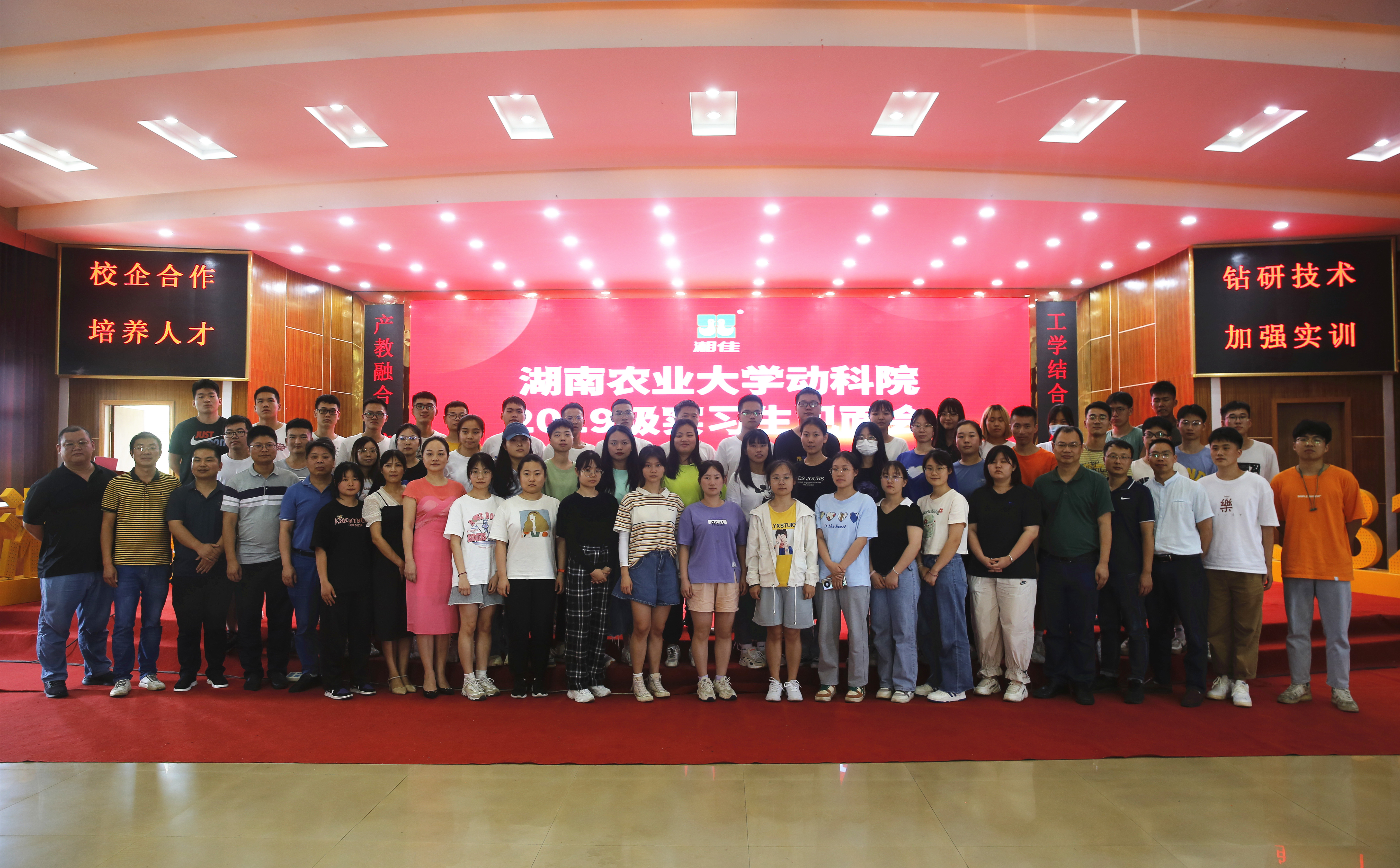 湘佳股份作為湖南農大動物科學技術學院的一流產學研融合基地,湖南農大已連續8年派出學生到湘佳股份跟崗實習。