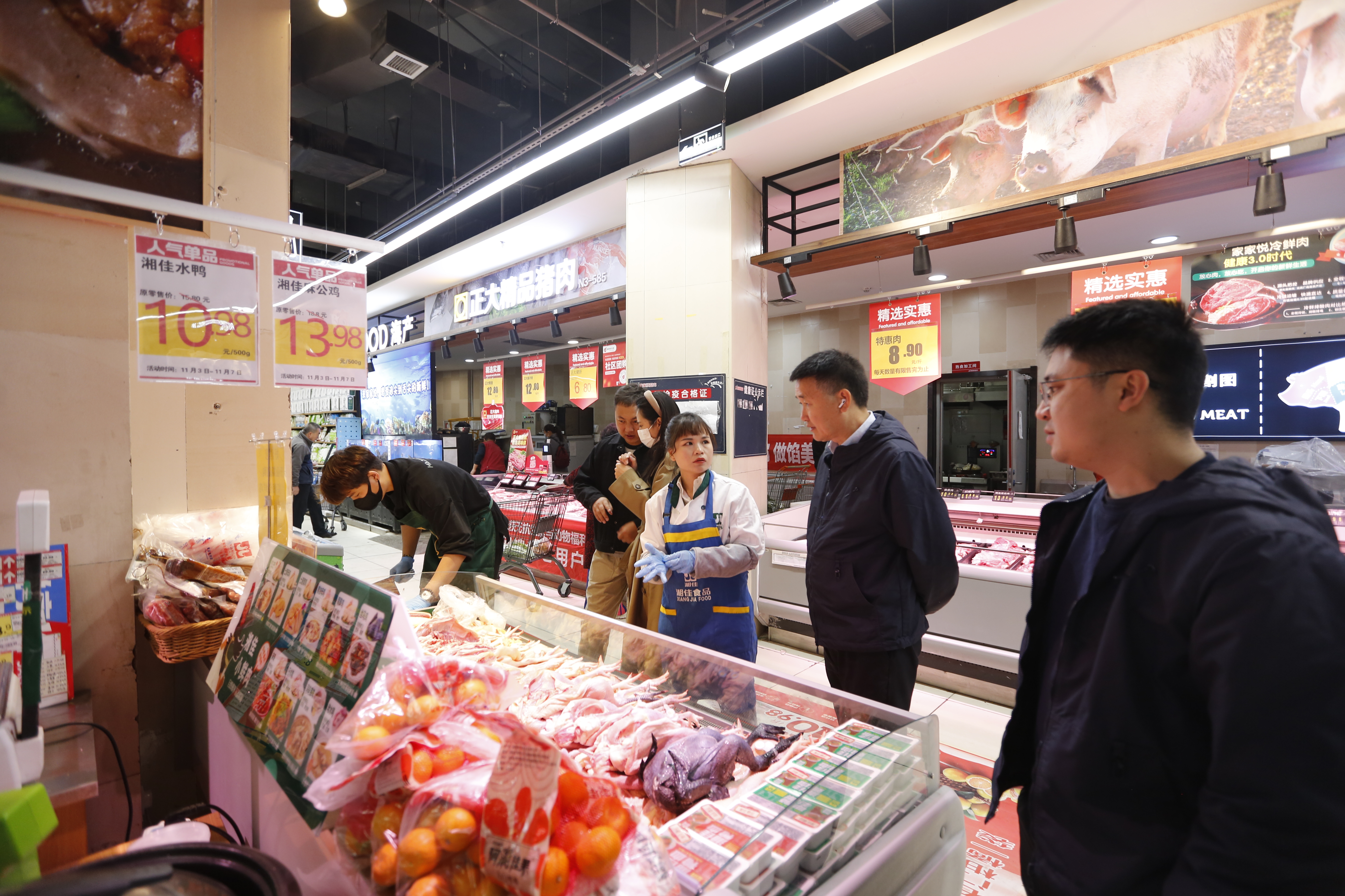 “從超市早上開門開始,就一直有顧客來詢問和購買我們公司的雞肉,第一天就在內(nèi)蒙古這個新市場搞了一個開門紅。”工作人員一邊忙著給顧客剁肉,一邊給湘佳股份董事長喻自文和副總裁趙柯程匯報首日銷售情況。