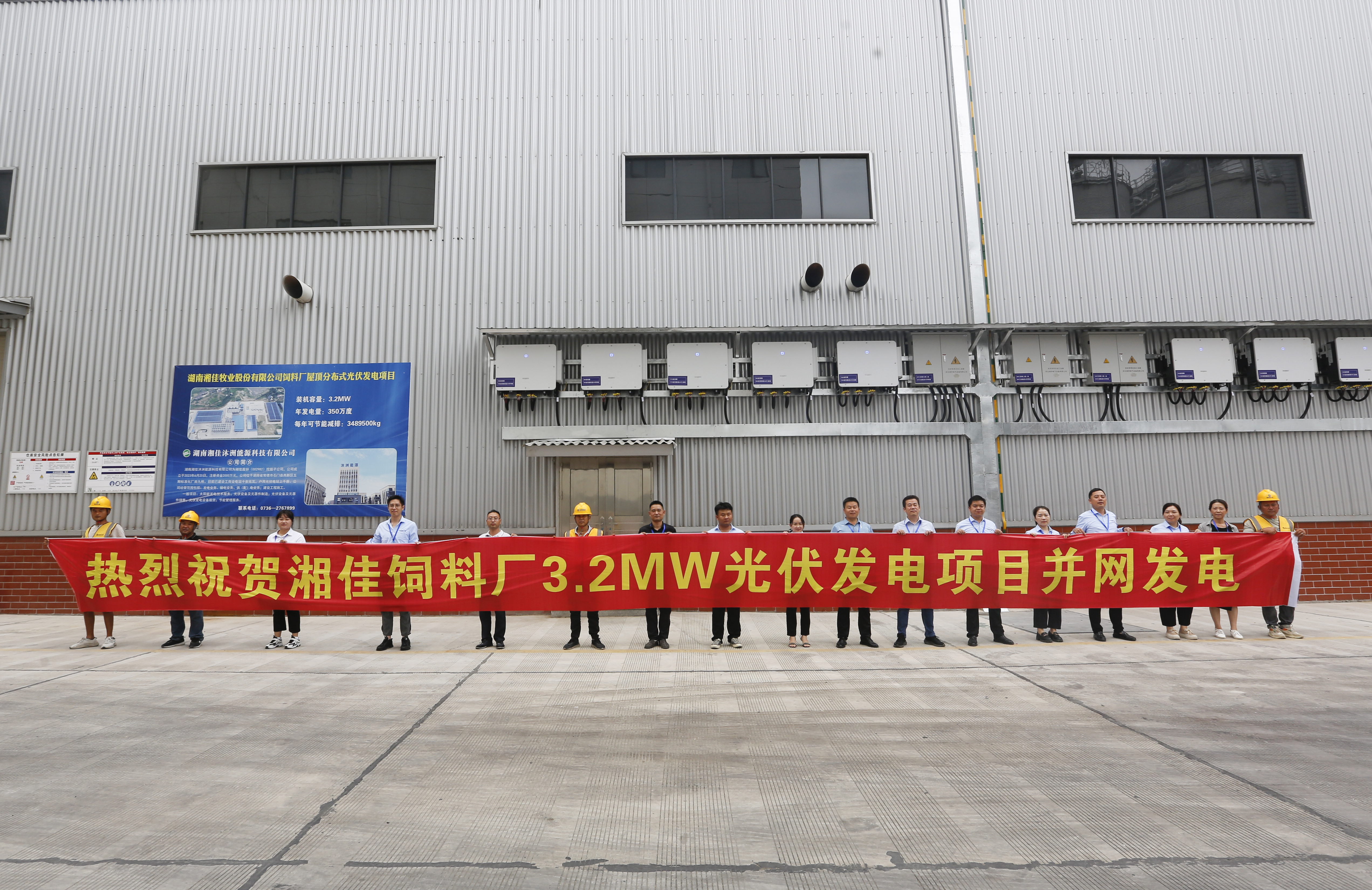 在“雙碳”目標引領下,湘佳股份充分利用資金、技術、場地等優勢,投資4億元,在飼料廠、飼養場、工業園等場所屋頂規模化安裝光伏發電板,預計到2024年底,該光伏發電項目全面建設完成,總體裝機容量達100MW,每年將生產清潔電力1億度,每年節能減排99700噸二氧化碳。